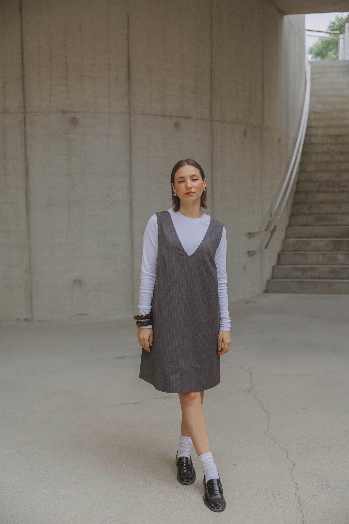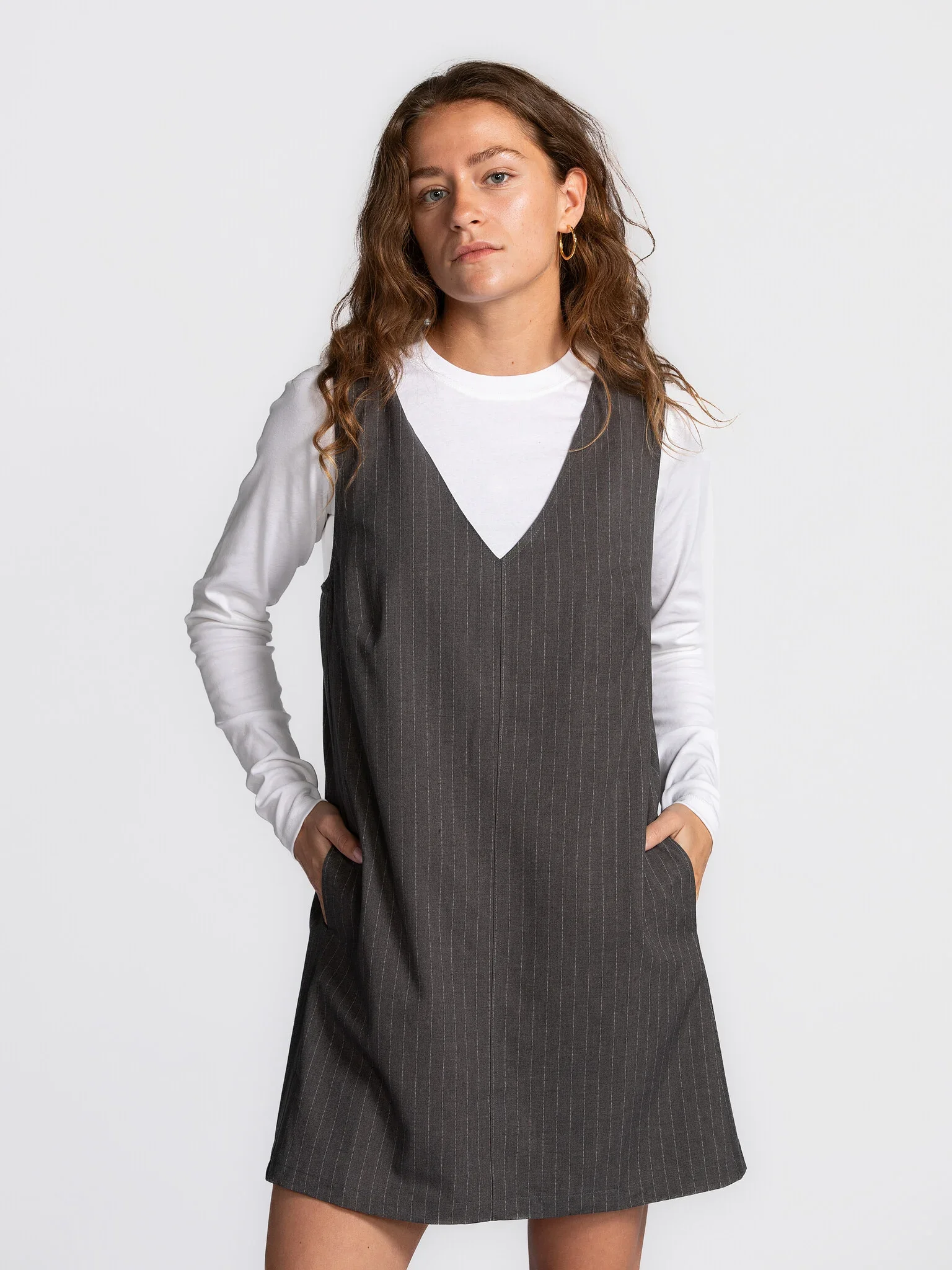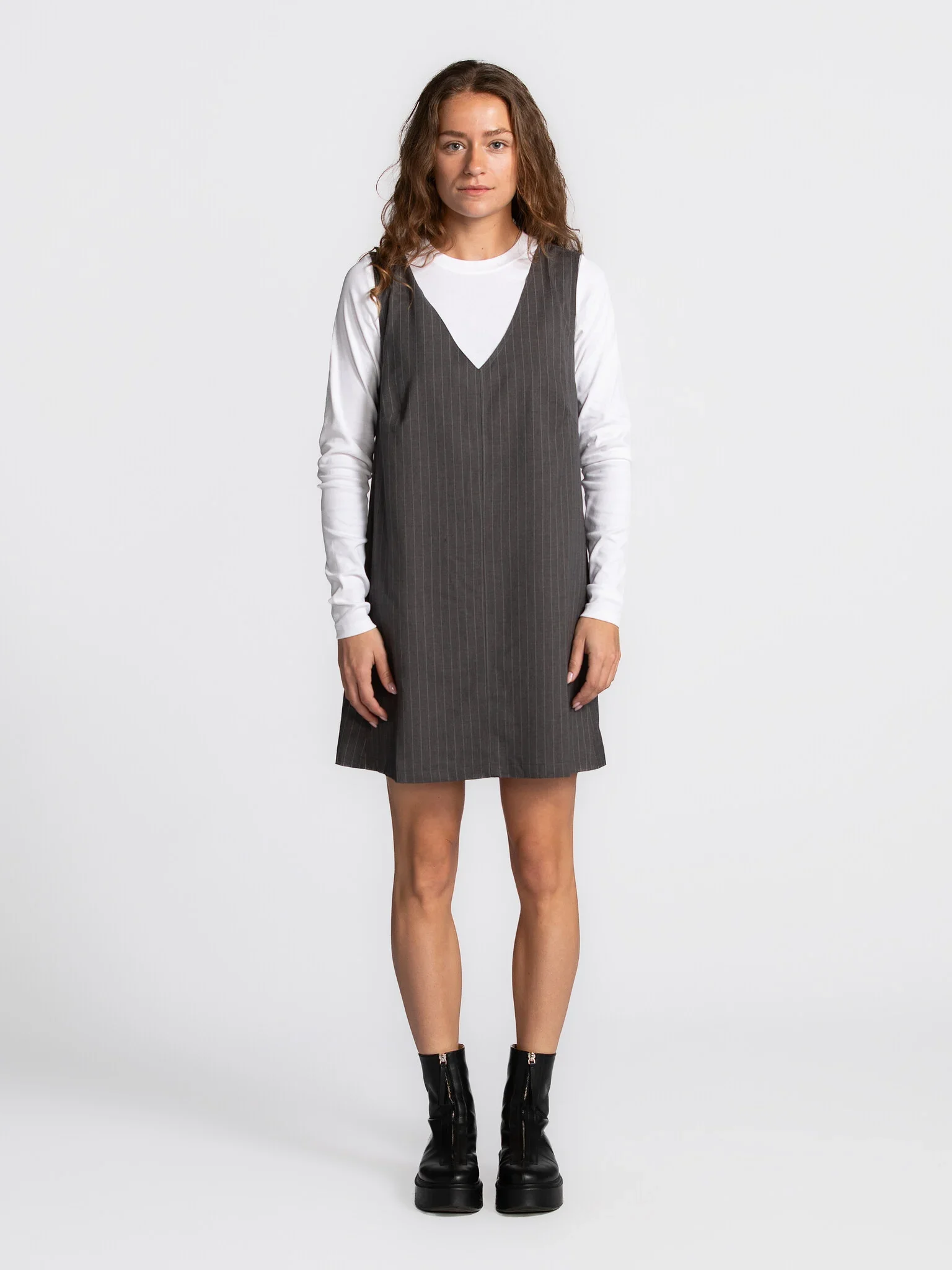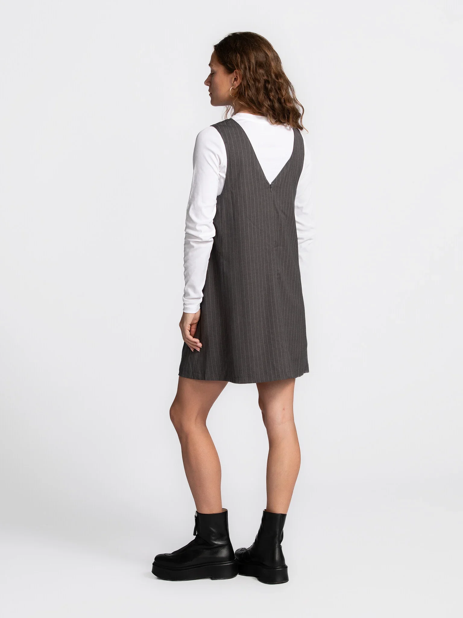 Cool met een zachte twist. Deze korte khaki jurk met contrasterende stiksels combineert workwear-invloeden met een vrouwelijke feel. Speels en stoer tegelijk. Draag met sokken en je favoriete sneakers voor een speelse herfstlook.